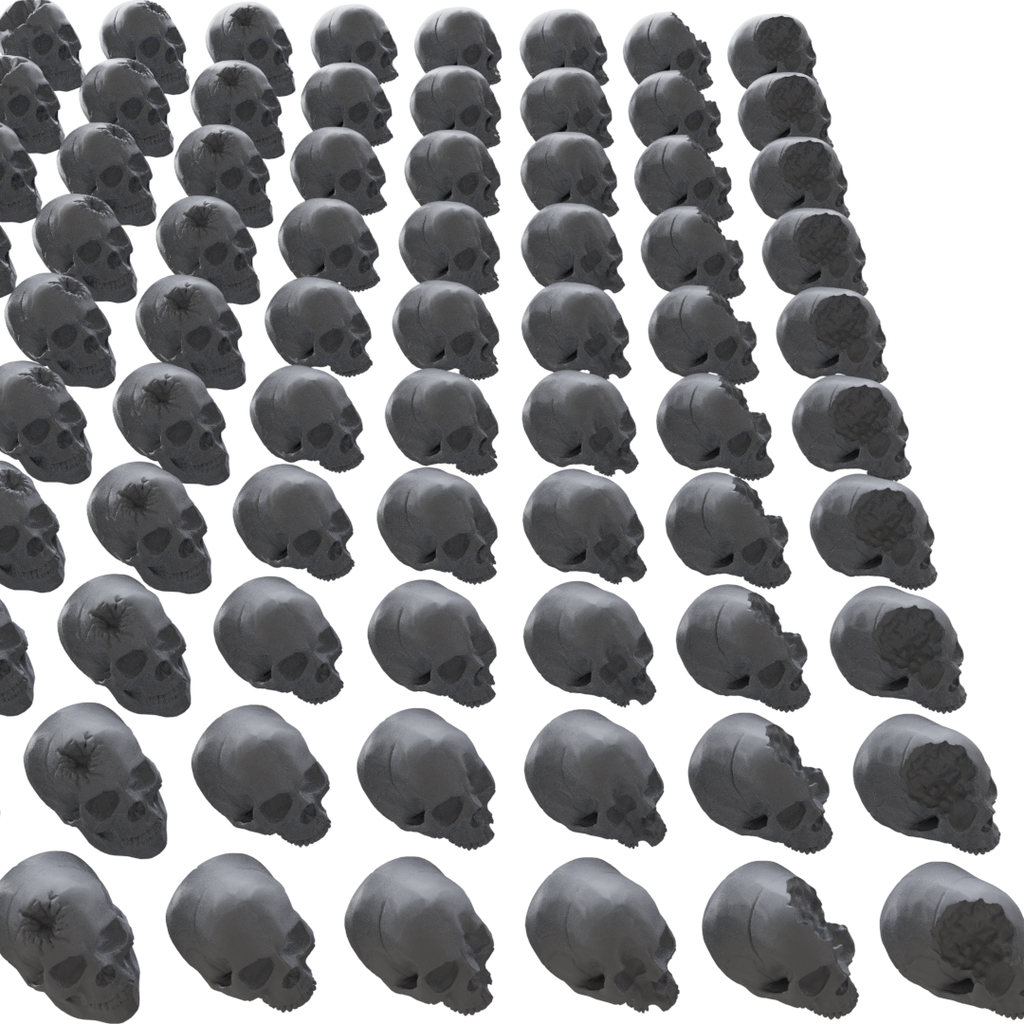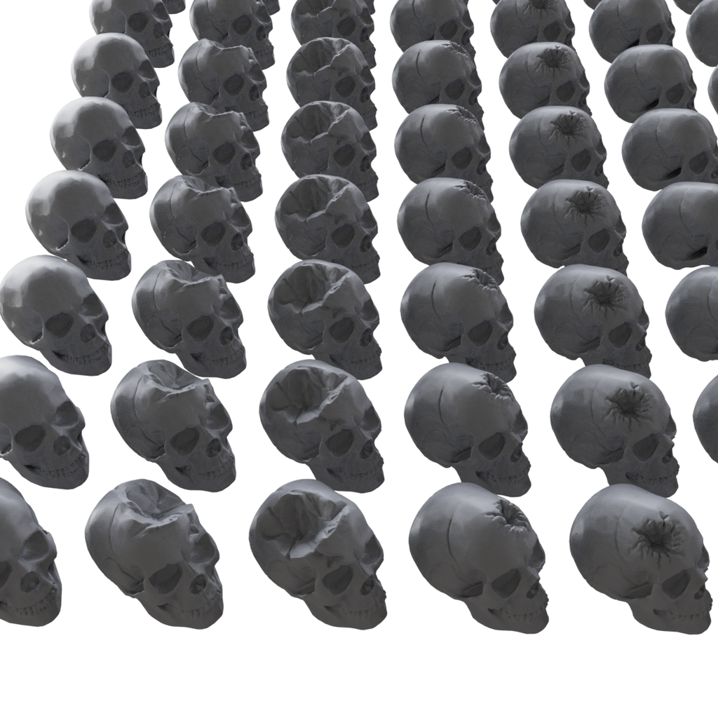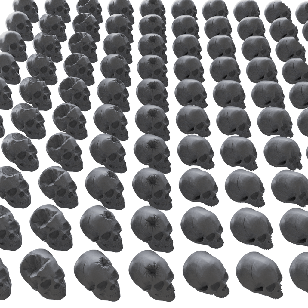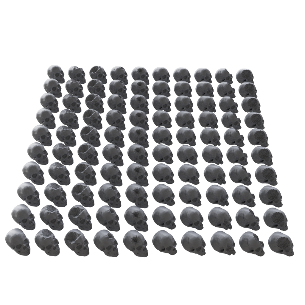 Enhance your wargame environments with this extensive set of 300 resin-printed skulls, perfect for decorating miniature bases and terrain. Each skull is crafted with high detail, providing an authentic and eerie touch to your gaming setups.
